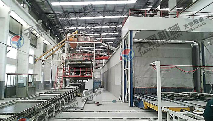 TYF-16B型复合墙板生产线,是我公司自主研发的固定式复合墙板生产线,该生产线投入小,生产产品品质量好,产品成型效率高,可生产多种类型的墙板,配有大型搅拌系统、移动注资系统、整体出板码垛系统等自动化的配置,还配有骨料的输送和计量系统,使配...