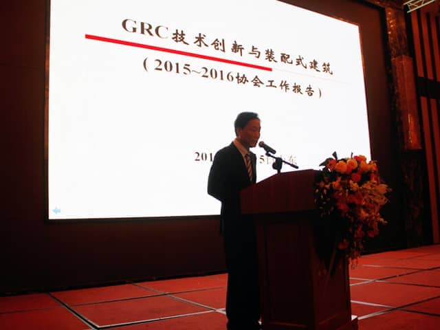 会议首先由中国混凝土与水泥制品协会沈冰副秘书长讲话, 在讲话中表示,对参加此次年会的专家学者表示感谢,总结GRC行业面对经济新常态下积极引导企业加大供给侧改革,确保行业经济稳定增长。并强调2016年作为“十三五”开局之年,应加快建筑工业化转型升级。刘敬疆处长在会议中对我国集成装配式房屋发展现状以及绿色建材评价标识进行详细的介绍。崔琪院长在会议中对2015-2016协会做详细工作汇报。并对GRC行业所面对传统制造行业问题以及下一步发展战略做了重点介绍。完美(中国)机械销售经理秦艳慧在会中对GRC墙板在装配式建筑中的应用做了详细的技术汇报。本次年会将围绕“GRC 技术创新与装配式建筑”主题交流。会中各参会代表分别对GRC行业技术创新及应用发表各自的见解。