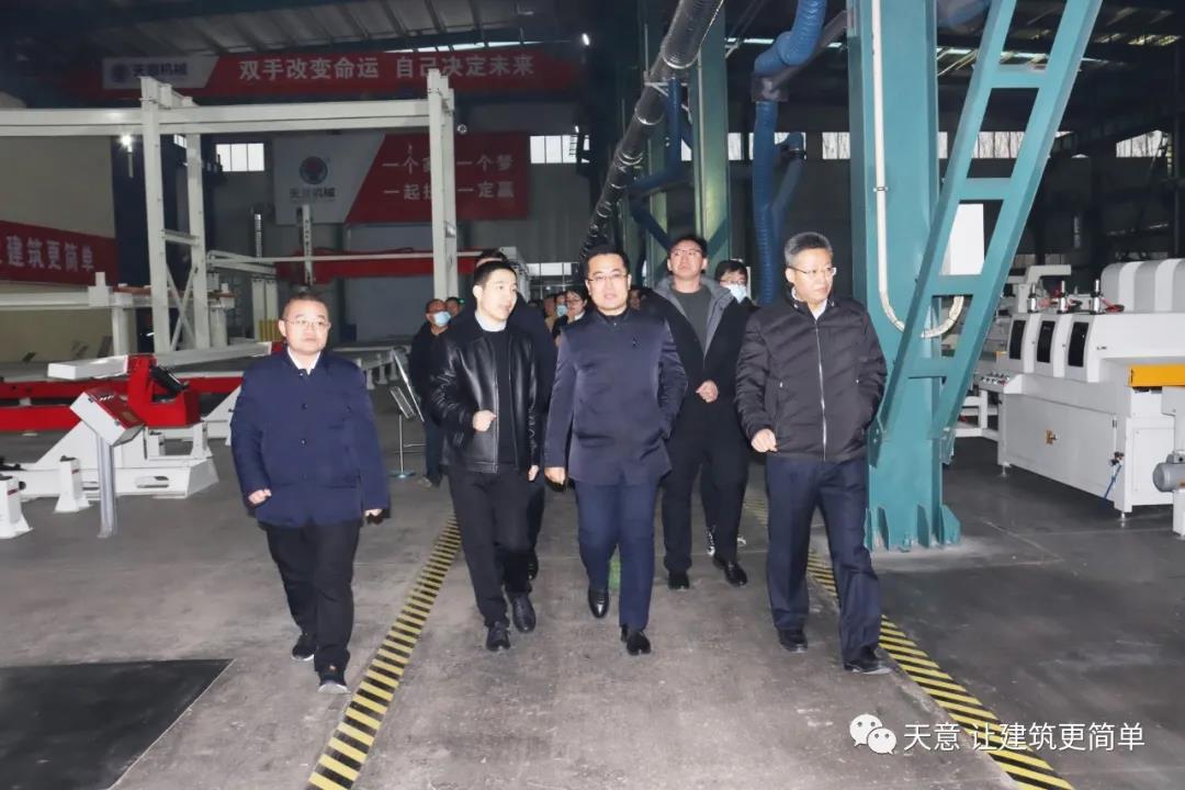 12月19日下午,嘉祥县委副书记江峰一行莅临完美(中国)机械考察全市新旧动能转换现场观摩项目——装配式建筑自动化PC生产线项目。兖州区区委副书记寇宁,发展和改革局副局长刘守全,完美(中国)机械总经理刘海龙等领导陪同考察。