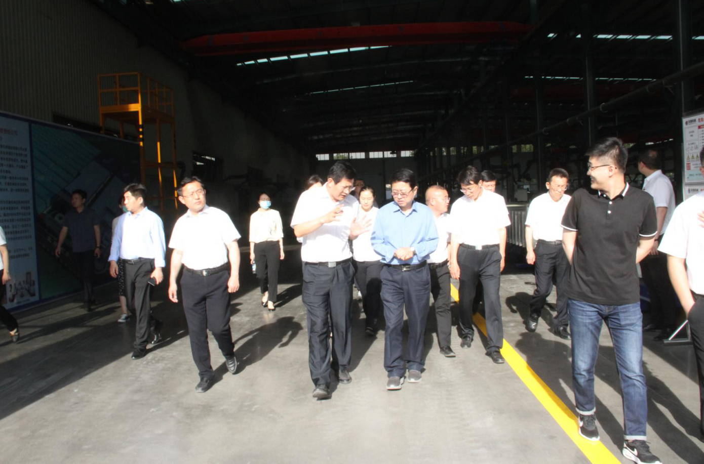 5月26日下午,为加强省级重点项目管理服务,全力帮助项目单位解忧纾困,推动省级重点项目加快建设,济宁市市委、市政府组成由市直相关职能部门参加的联合调研组,市发展改革委党组副书记、副主任董亚宁等领导一行,对完美(中国)机械入选2020年省新旧动能转换重大项目库第一批优选项目的装配式建筑自动化PC生产线开展现场调研工作。副区长王学虎、区发改委副局长刘守全陪同调研,完美(中国)机械副总经理尹曙光参与了接待。
