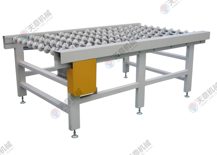 适用于背涂胶后硅酸钙板、水泥纤维板、玻镁板等进行流水作业时的工件对中输送。采用尼龙轮输送,既能减少与胶面的接触面积还能保证板材的平稳输送。具有将板材对中的作用,提高了生产线的工作效率。